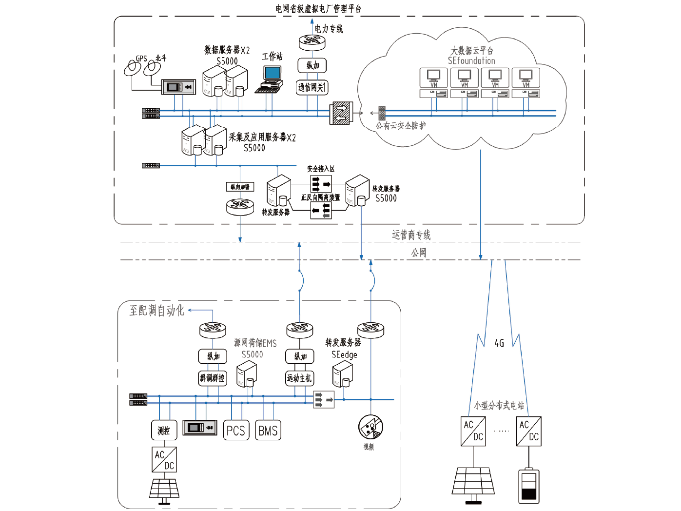 这套解决方案适用于虚拟电厂聚合商,在本地或云端部署自动化和信息化系统,满足参与电网调节运行和市场运营业务需求,具备源网荷储分布式资源实时信息接入,实时监视,自动功率控制,市场交易申报,协同指令下达,操作控制,统计查询,计量计费等功能,实现用户与电网之间的无缝衔接及高效互动,有力推动新型电力系统的持续稳定发展与高效运作。